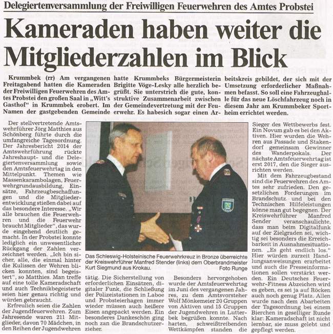 Delegiertenversammlung der Feuerwehren des Amtes Probstei 2015 |