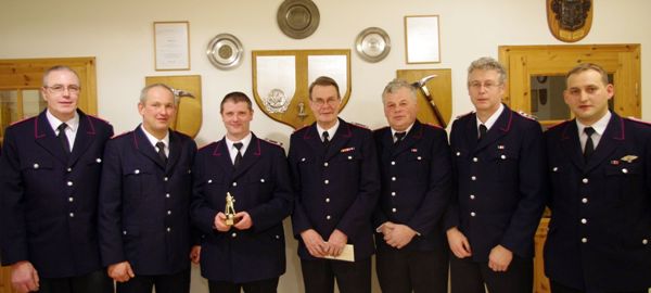 Nachfolger von Puck wurde mit einem einstimmigen Wahlergebnis Georg Feddern. Henry Sauvandt wurde, in offener Wahl, neu in das Amt des Gruppenführers gewählt. Andreas Wichelmann und Jochen Stoltenberg wurden zu Feuerwehrmännern befördert. Die Brüder Carsten und Michael Glüsing wurden für jeweils 20-jährige Mitgliedschaft in der Wehr geehrt. Spannend war die Auswertung zum Feuerwehrmann des Jahres. „Es war ein Kopf an Kopf Rennen und am Ende entschied eine halbe Stunde zugunsten von Ramon Rohde“, so Mario Trieloff, der Ramon Rohde den Wanderpokal überreichte.
