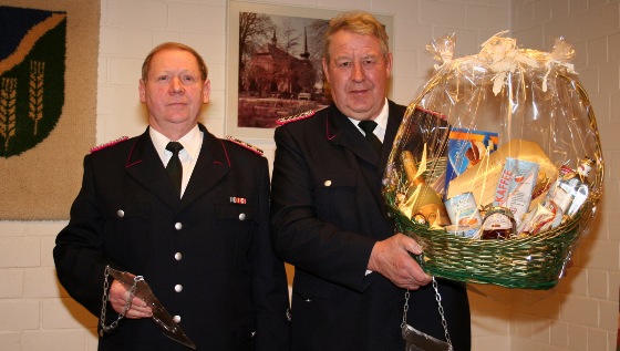 Doris Artzinger und ihren Mann Lutz konnte Wehrführer Sven Erichsen nach dem Anwärterjahr in die Reihen der Aktiven aufnehmen. Kevin Reimann konnte von der Jugendwehr in die aktive Wehr übernommen werden. In die Ehrenabteilung verabschiedet wurden Arnold Thymian und Karl-Heinz Boldt, der für sein Engagement als ehemaliger stellvertretender Wehrführer einen Präsentkorb erhielt.