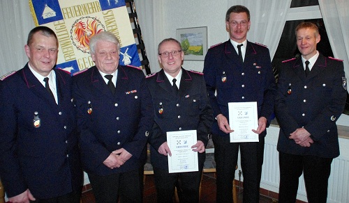 Wahl- und Beförderungsmarathon bei der Jahreshauptversammlung der FF Stakendorf |